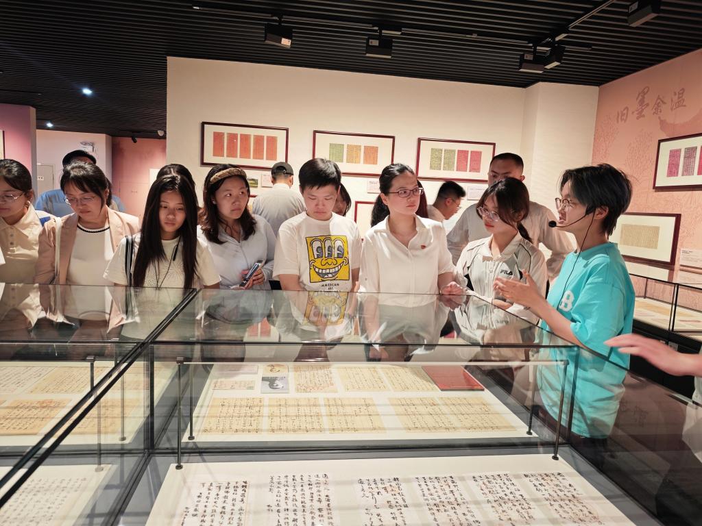 在讲解员的引导下,全体人员依次参观了“古代家书”“近现代家书”“红色家书”等展区,开启了一段穿越时空的心灵之旅。一封封泛黄的家书,承载着革命先辈们对家人的思念、对子女的教诲以及对国家和民族的担当。大家驻足凝视,认真聆听每一封家书背后的故事,或感人至深,或催人奋进,党员干部们仿佛穿越时空,与革命先烈进行了一场心灵对话,在历史与现实的交融中,汲取奋进力量,强化廉洁意识。“砍头不要紧,只要主义真……”“母亲不用千言万语来教育你……”感悟到革命先辈以信仰筑魂、以清廉传家的崇高精神,党员们禁不住朗读出声,深深沉浸在家书文化的力量中。