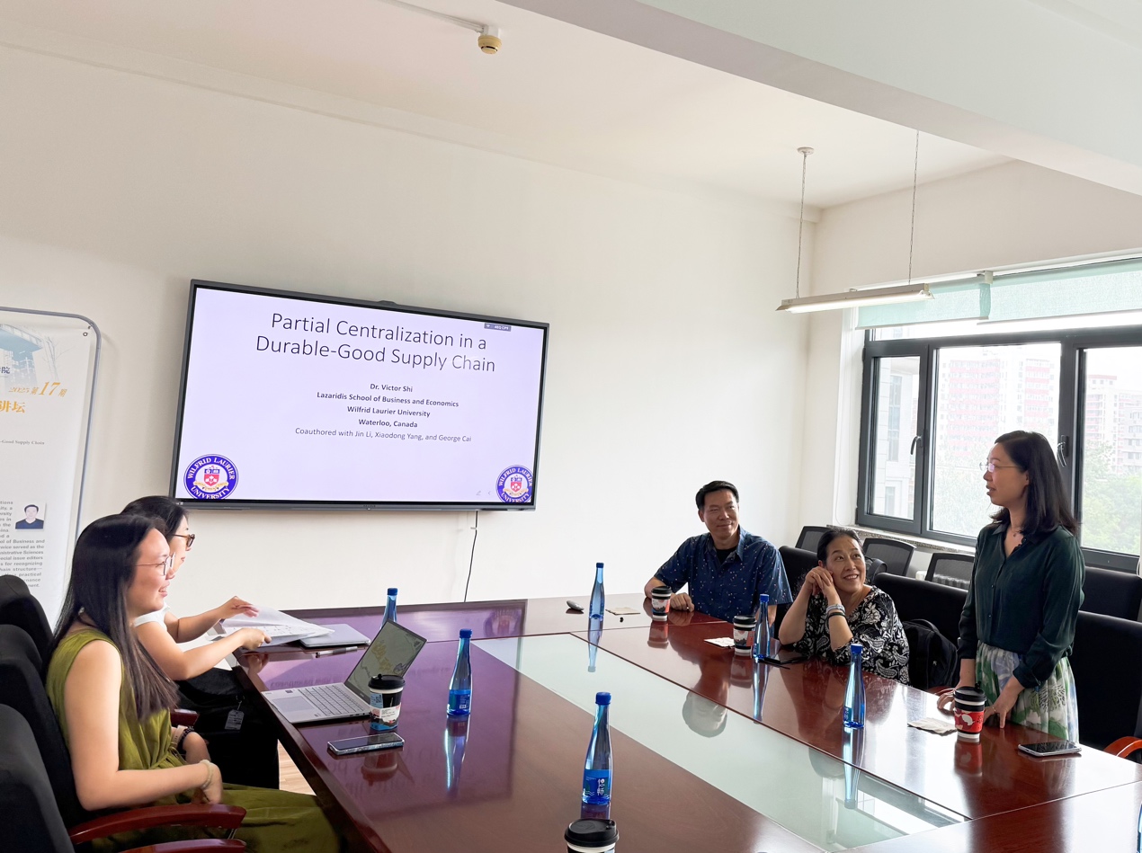 会议由beat365亚洲体育供应链管理系教授晏妮娜老师主持。在讲座开始前,晏老师简要介绍了Chunming Shi老师的履历。施春明博士拥有美国华盛顿州立大学运营管理博士学位、国立大学工程硕士学位,以及中国科学技术大学工程与工商管理双学士学位。他现任加拿大威尔弗里德·劳里埃大学拉扎里迪斯beat365亚洲体育的终身教授及博士生导师。施博士曾两次担任加拿大行政科学协会(Administrative Sciences Association of Canada)管理科学分会主席,并曾担任多本顶级学术期刊的特刊主编。