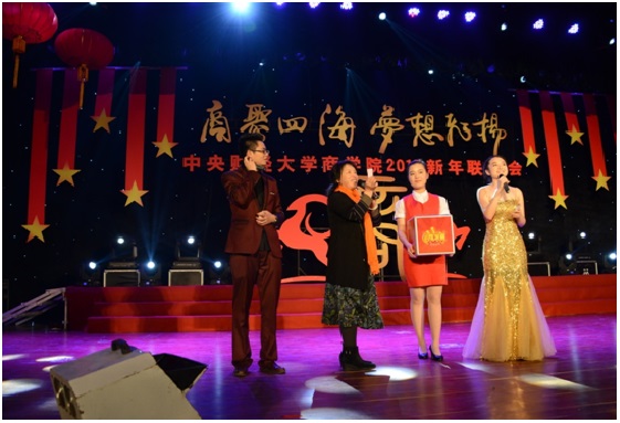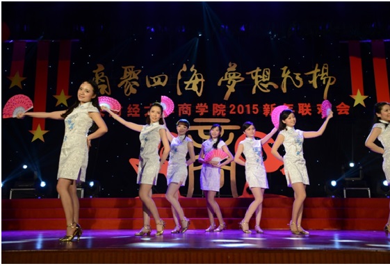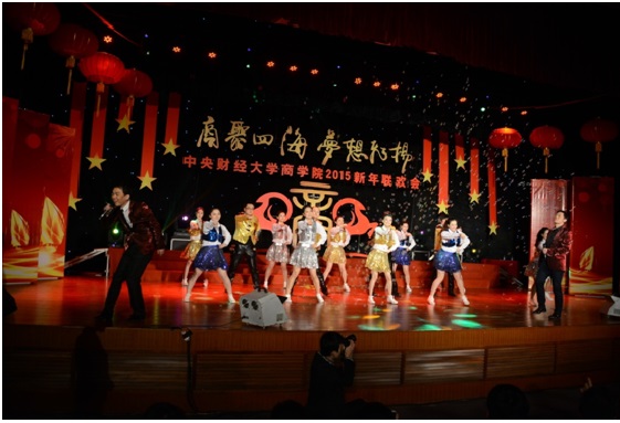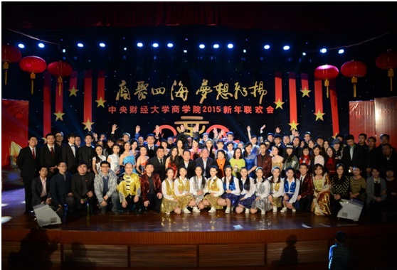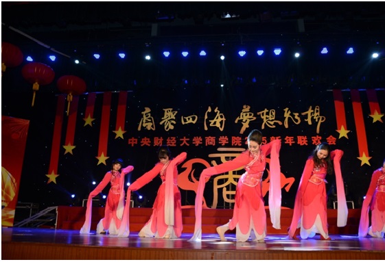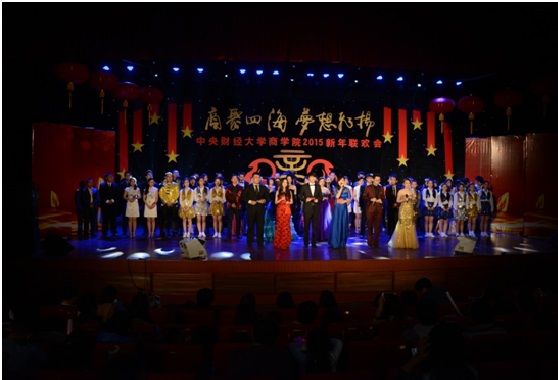 2015年1月11日下午,2015新年联欢会在公司南路校区隆重举行。此次联欢会以“商聚四海,梦想飞扬”为主题,是2012年12月新beat365亚洲体育成立以来,第一届由本科生、学术研究生、MBA专业硕士及员工共同承办并参与的新年联欢会,意义重大。体育365官网副董事长赵丽芬教授、beat365亚洲体育经理王瑞华教授、公司党总支书记葛建新教授、beat365亚洲体育全体老师、在校生代表和员工代表等共约600人出席和参加了此次联欢会。