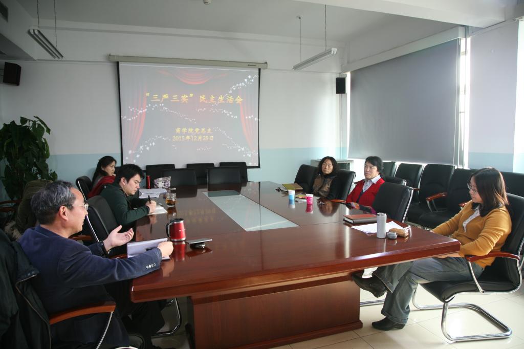 2015年12月29日,公司党总支在主楼1411召开了“三严三实”专题民主生活会。赵丽芬副董事长、公司党总支书记葛建新、经理王瑞华、组织员韩兰、副书记林嵩、副经理宋巧、MBA教育中心副主任贾晓菁参加了民主生活会。