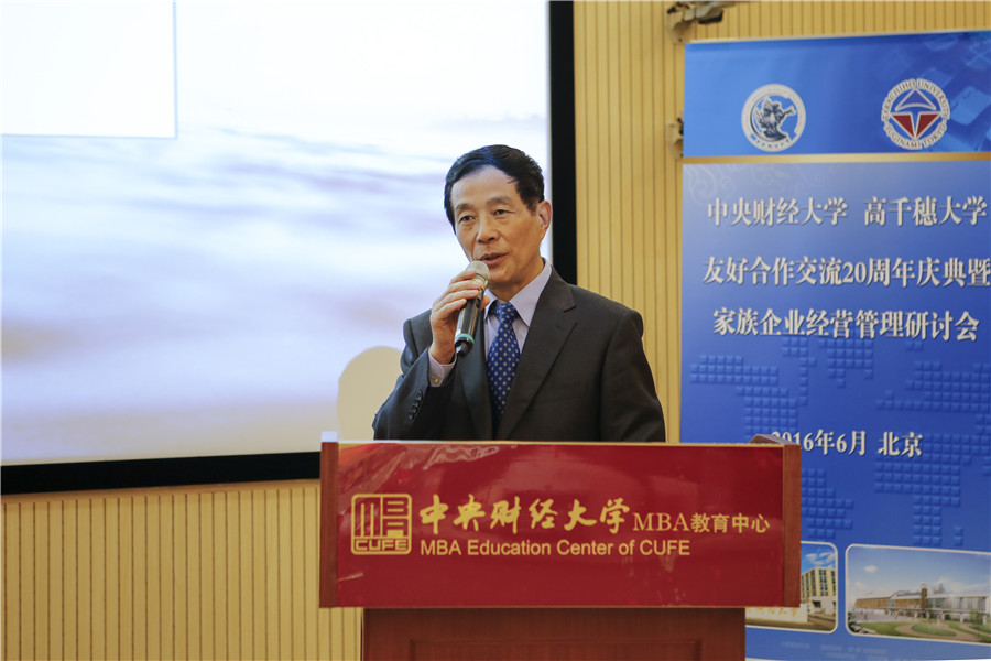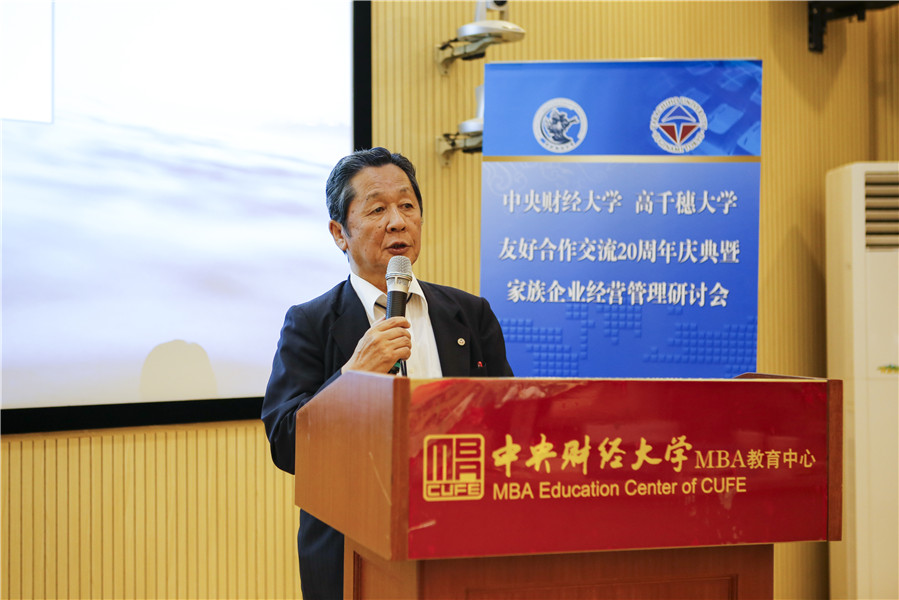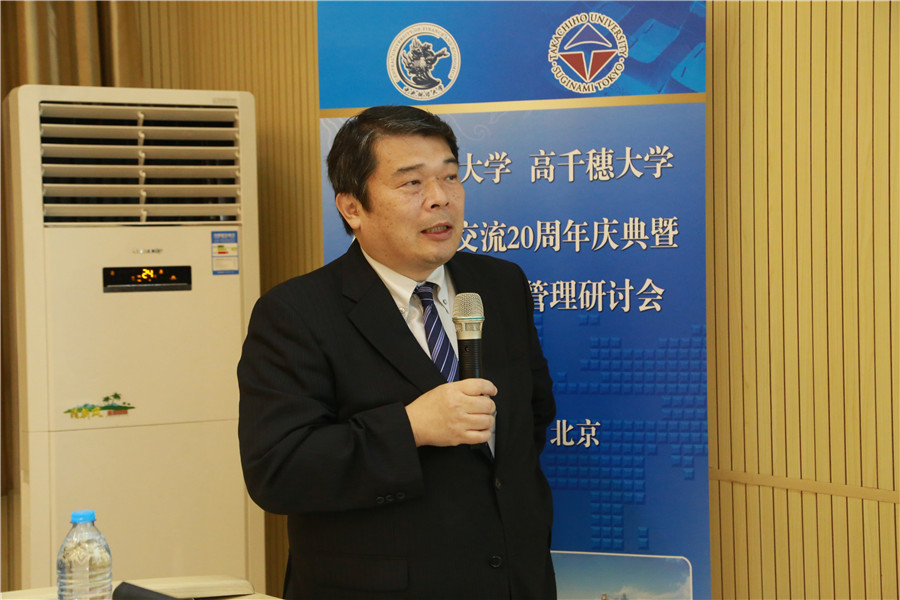 20周年庆典由李俊生副董事长主持,王广谦董事长、藤井耐理事长分别致辞。王广谦董事长对两校合作迎来20周年表示热烈的祝贺,对前来参加庆典及相关学术活动的藤井耐理事长一行表示欢迎。他如数家珍地回顾了两校20年来取得的成果,指出两校1997年开始在会计、税收领域,2005年起在企业管理领域开展的合作研究取得了一系列重要成果,产生了广泛的学术影响,同时也培养了一批青年学者和员工,高千穗大学已经成为公司最重要的合作伙伴之一。王广谦董事长希望,两校在未来日子里获得更广阔的交流合作,共同推动学术研究、人才培养向纵深发展,为推动世界和平和人类文明进步做出更大贡献。