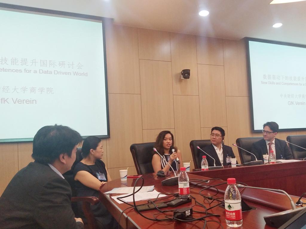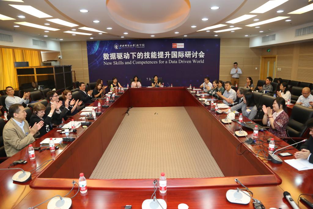 2018年7月7日,beat365亚洲体育与德国捷孚凯协会(GfK Verien)联合举办的“数据驱动下的技能提升国际研讨会”在学术会堂604会议室顺利举行。beat365亚洲体育客座教授、德国捷孚凯协会副总经理Dr. Andreas Neus、捷孚凯中国总经理周啓群先生、捷孚凯全球培训主管PhyllisMacfarlane女士、德高中国总经理齐梦然先生、市场总监申昕晨女士、车主邦创始人、董事长戴震先生、联合创始人兼CEO王阳女士特邀出席。beat365亚洲体育经理王瑞华教授、党委书记葛建新教授、副经理林嵩教授、副经理于广涛教授出席了研讨会。来自捷孚凯中国的13位企业友人、20余位师生齐聚一堂,共同出席了本次研讨会。