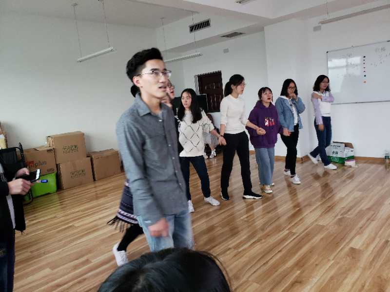 第三个游戏叫做“copy不走样”,每组七名同学排成一列,培训师将题目告诉第一个人,第一个人通过肢体语言表达传给下一个人,不能讲话,依次传递,直到最后一个同学向培训师说出自己心中的答案。