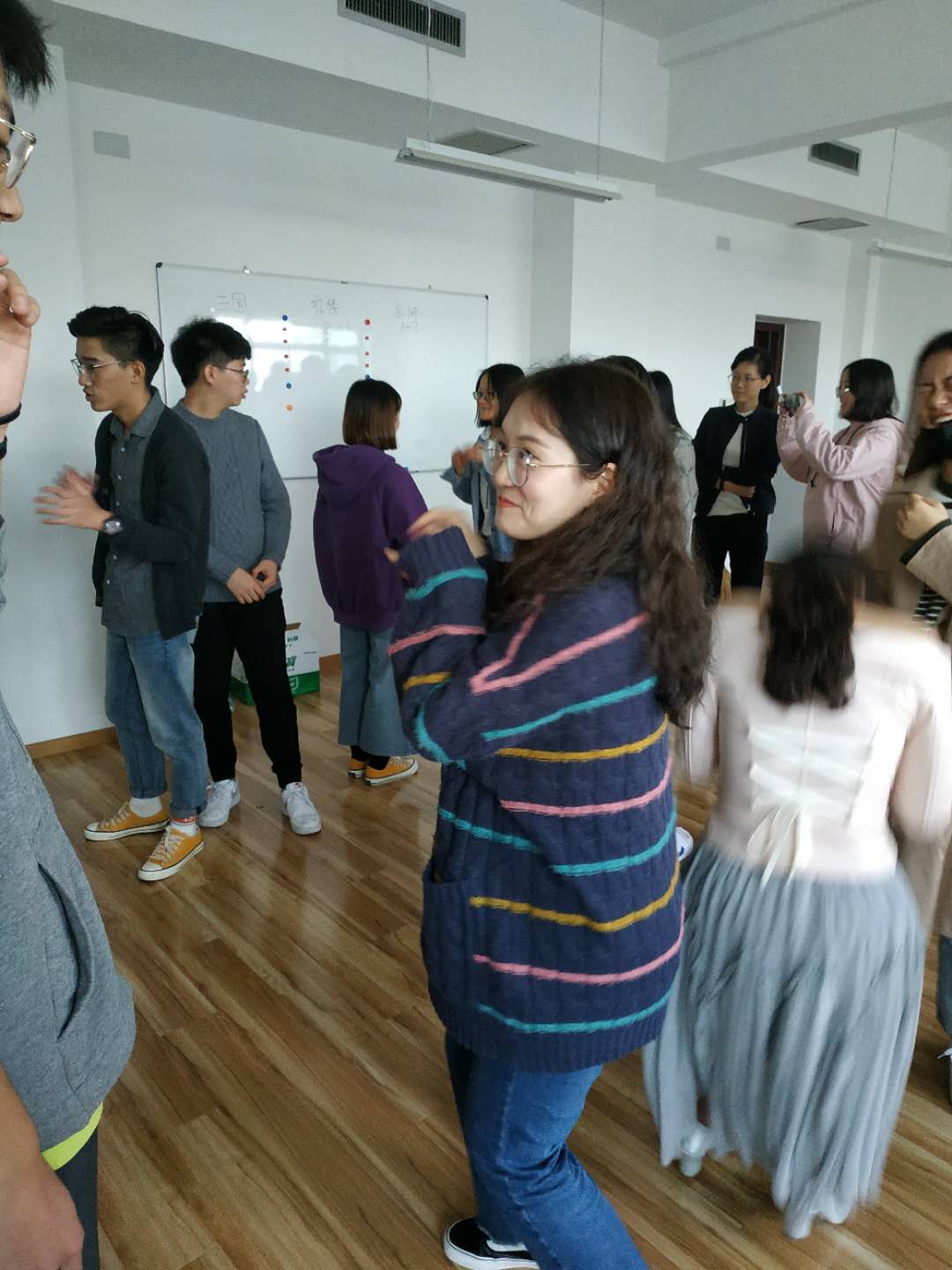 预热环节的竹节游戏中,重复者需快速说出对方名字。这帮助同学们快速相互认识,增强了同学们之间的感情,有利于建立一个和谐的团队。