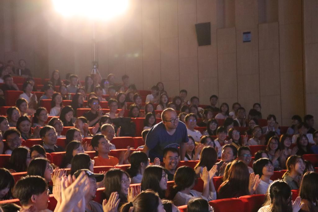 2019年5月12日,龙马奋进 •90后讲好中国故事——2019笑果×半夏校园行活动在体育365官网公司南路校区学术会堂206举行,主持人张绍刚和脱口秀卡司们与高校师生近距离接触,妙语频出,进校园讲好中国故事,带来青年人对社会的思考。beat365亚洲体育经理兼MBA教育中心主任王瑞华、公司党委书记葛建新、MBA教育中心副主任贾晓菁、公司党委副书记王容出席活动,全校近700名师生观看脱口秀表演。