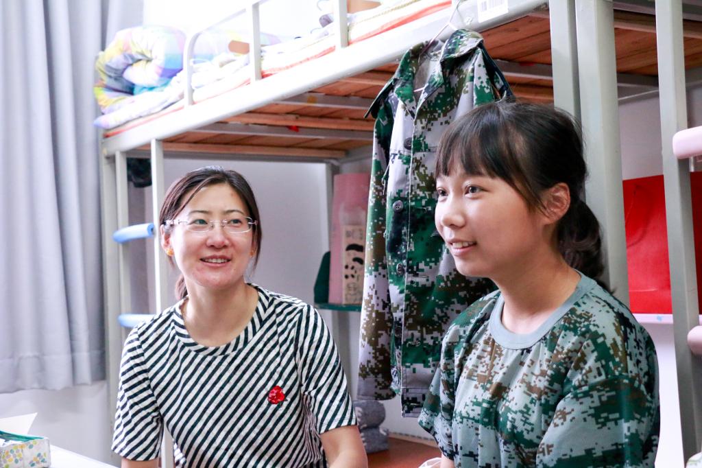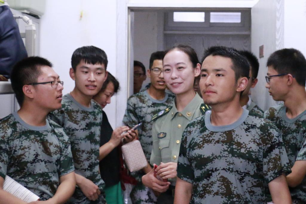 虽然由于天气下雨的原因未能在训练场看望同学们,但转战宿舍走访也有别样的温馨,更加拉近了师生距离。同学们见到老师们到来纷纷起身,与老师们热情交流。