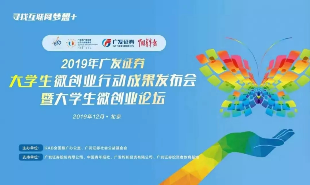 微创业行动成果发布会现场,中国青年报社副总编辑、KAB全国推广办公室总干事董时、广发证券股份有限公司监事长、广发证券社会公益基金会理事张少华分别致辞。随后在活动现场颁发2019年老员工微创业项目乡村振兴创新奖,2019年老员工微创业项目金、银、铜奖及2019年老员工微创业行动优秀组织奖。公司KAB社团乐博在现场做主题发言,中财KAB社团指导老师王婷婷带领社团成员前往现场学习并代表公司领奖。