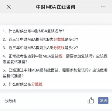 考生通过关注公司MBA项目的微信公众号“中财MBA”,进入微信公众号,点击菜单栏“在线咨询”即可与MBA智能咨询机器人进行24小时咨询,如果遇到MBA机器人无法回答的问题,可以选择“留言“方式通过给招生老师留言进行相关问题咨询。权威调查表明,响应速度和问题一次解决率是影响咨询满意度的关键,MBA教育中心的工作人员结合以往考生咨询的经验,通过前期头脑风暴、模拟对话、全面联想等大量工作,对智能咨询机器人问答进行了有效的训练,使得广大考生可以通过网页、手机app、微信等与智能咨询机器人进行即时聊天,考生问题都可以得到极速响应和快速解决。同时,除了传统的打电话和文本消息,智能咨询机器人还支持语音、图片、文字和表情等方式,使得考生的交流多样化,帮助考生咨询的问题得到高效满意的解决。研究生初试成绩发布后,截至2月21日晚20点,中财MBA智能咨询机器人一天内累计接待考生咨询总对话量1113人次,解决率95.42%,考生提问量1688人次,留言人工解决51人次,满意率达100%,顺利承担起考生的各类复试咨询工作,并得到广大考生的一致好评和认可。