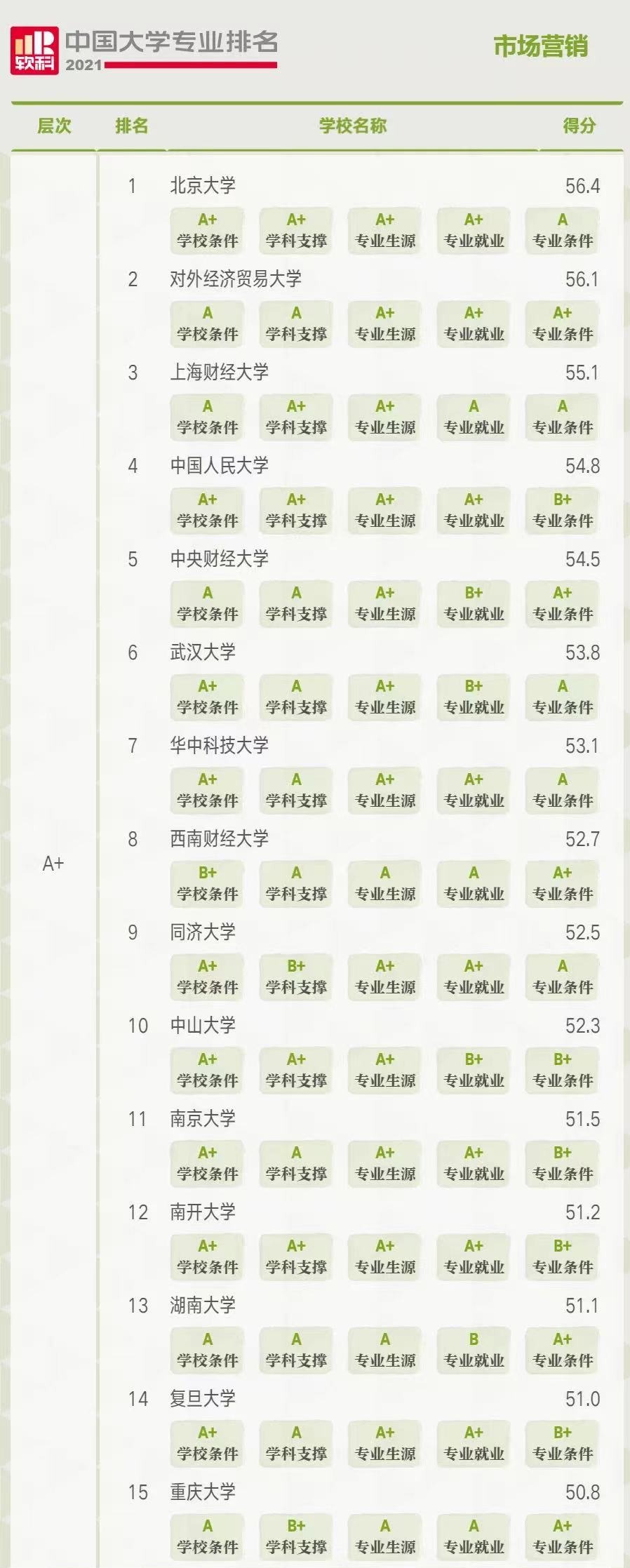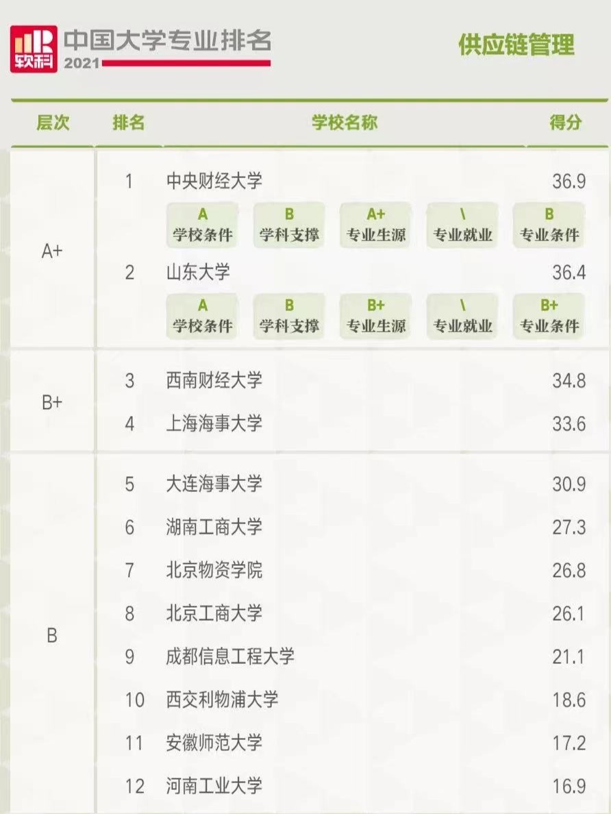 公司供应链管理和市场营销专业均获得A+等级,且供应链管理位列第一。同时,人力资源管理和工商管理也均获A等级。