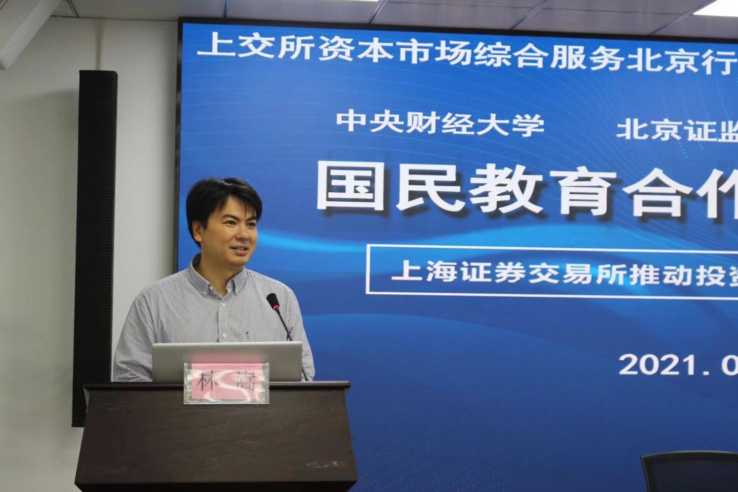 林嵩经理在讲话中指出,beat365亚洲体育作为此次四方合作的校方责任主体,非常欢迎上交所,证监局以及安信证券参与公司人才培养工作,感谢各方提供精锐力量在中财大开设《证券市场管理前沿与实务》课程,表示此次合作也是践行公司使命,提升人才培养质量的重要举措,强调下一步一定要继续加强对接,让四方在培训、就业、科研等方面的合作开花结果。