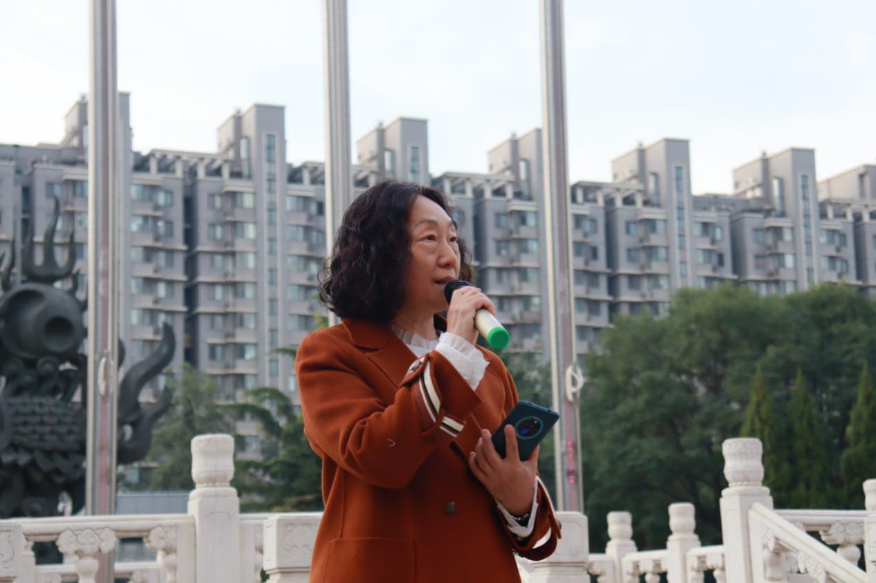 升旗仪式后,两院开展“国旗下的讲话”主题教育,老党员代表和新生分别在国旗下诉说属于自己的奋斗故事。老党员代表公司党委组织员韩兰老师在国旗下与21级新生分享自己上大学时的所见所闻并寄语21级新生。韩老师结合自身及同代人的经历,回顾了改革开放以来国家的巨大变化,抒发了生逢幸世的感慨。韩老师讲述好友送女回国读书的故事,表达了他们那代人对于祖国日渐强盛的骄傲和自豪。“青年的人生目标会有不同,职业选择也有差异,但只有把自己的小我融入祖国的大我、人民的大我之中,与时代同步伐、与人民共命运,才能更好实现人生价值、升华人生境界。”韩老师引用习近平总书记在纪念五四运动100周年大会上的讲话表达了对所有新生的殷切期盼。2021级本科生李佳莉代表全体新生向老党员韩老师献花表达敬意和感谢。