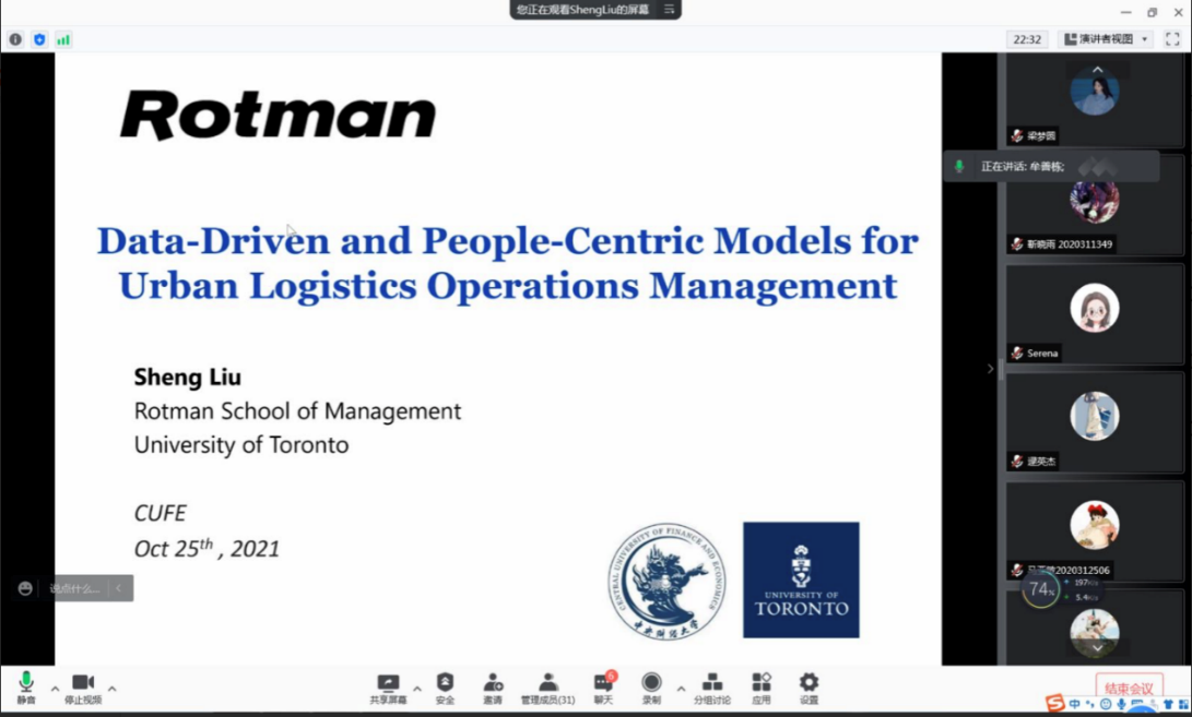 2021年10月25日上午10点半,beat365亚洲体育通过线上腾讯会议和线下同步会场(公司南路校区主教615会议室)结合的方式,开展了本年度公司卓越学术讲坛第八期暨管工公司智能管理交叉学科系列讲座第4期。本次讲坛邀请了加拿大多伦多大学罗特曼beat365亚洲体育运营管理和统计系助理教授刘晟博士作为主讲人,共有包括公司教师、硕博生和本科生在内的线上及线下四十余人出席了本次活动。