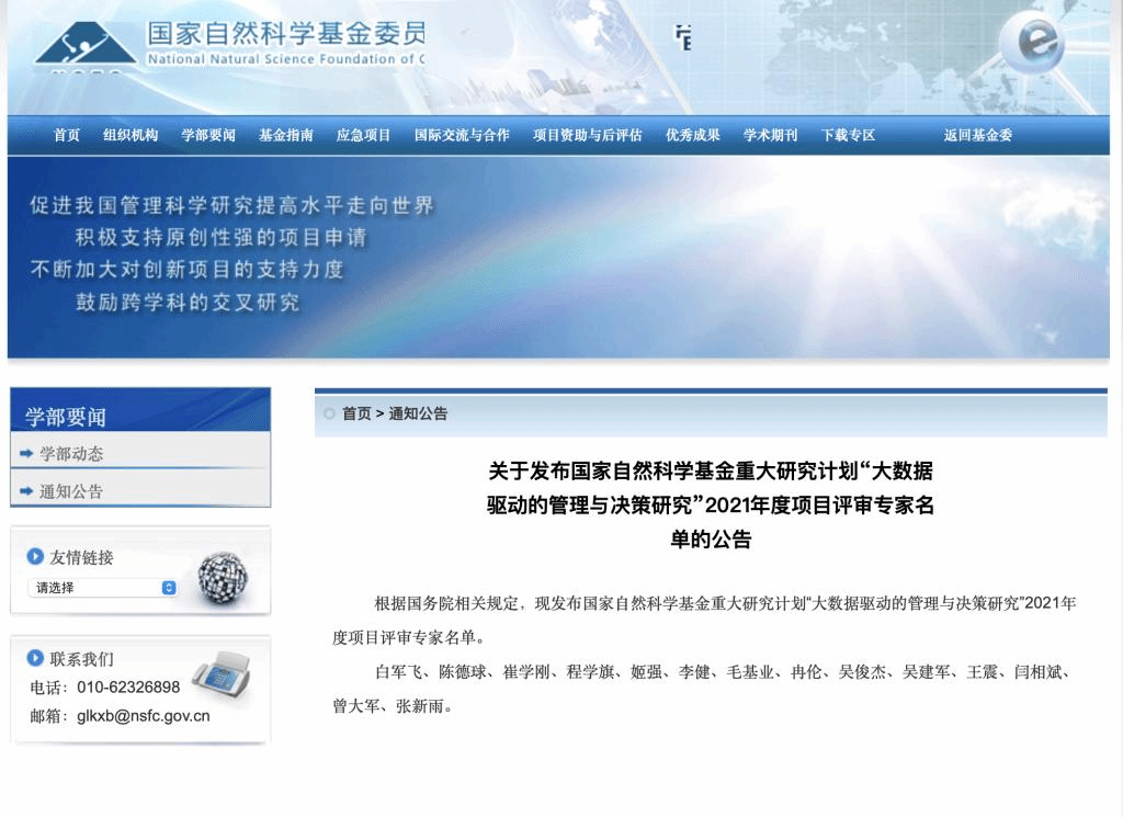 2021年11月15日,公司组织与人力资源管理系王震教授,受国家自然科学基金委员会邀请,担任会评专家,参与了国家自然科学基金重大研究计划“大数据驱动的管理与决策研究”2021年度项目会议评审工作。