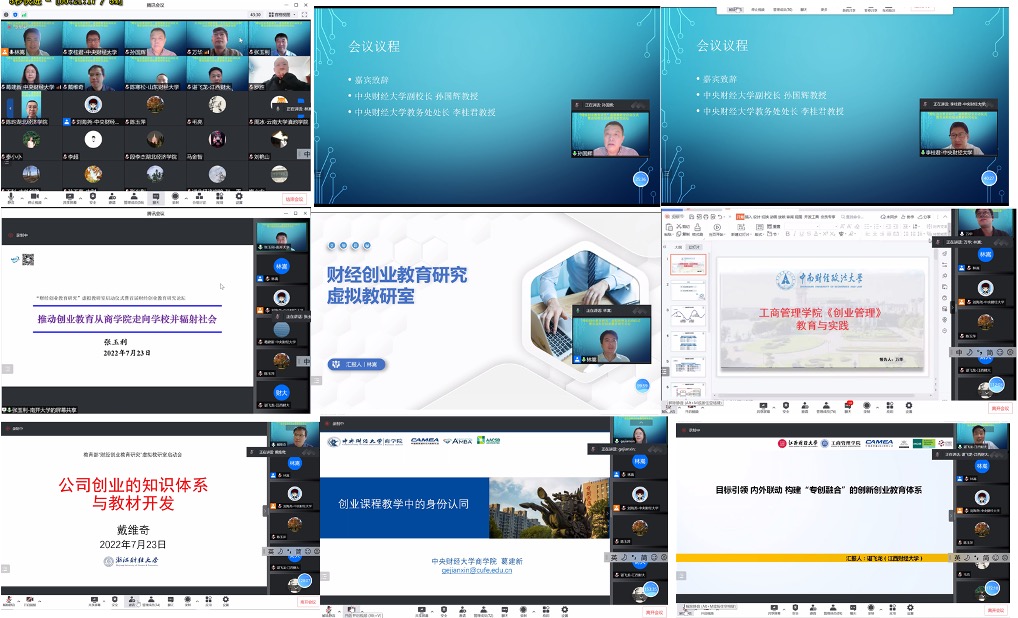2022年7月22日,体育365官网联合中南财经政法大学、浙江财经大学、江西财经大学、山东财经大学、新疆财经大学、广西财经公司、湖北经济公司召开“财经创业教育研究虚拟教研室”启动仪式暨首届财经创业教育研究论坛。
