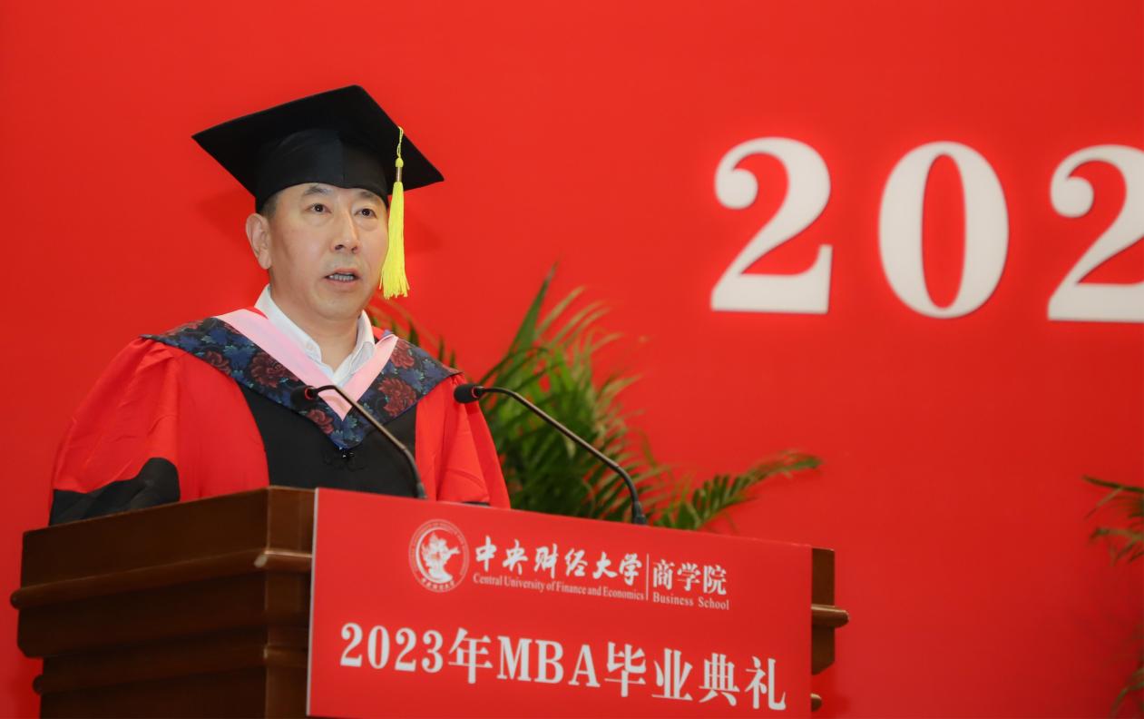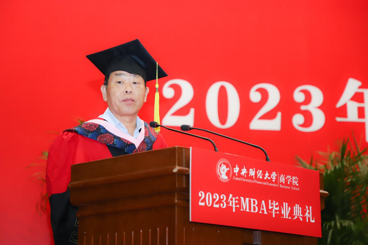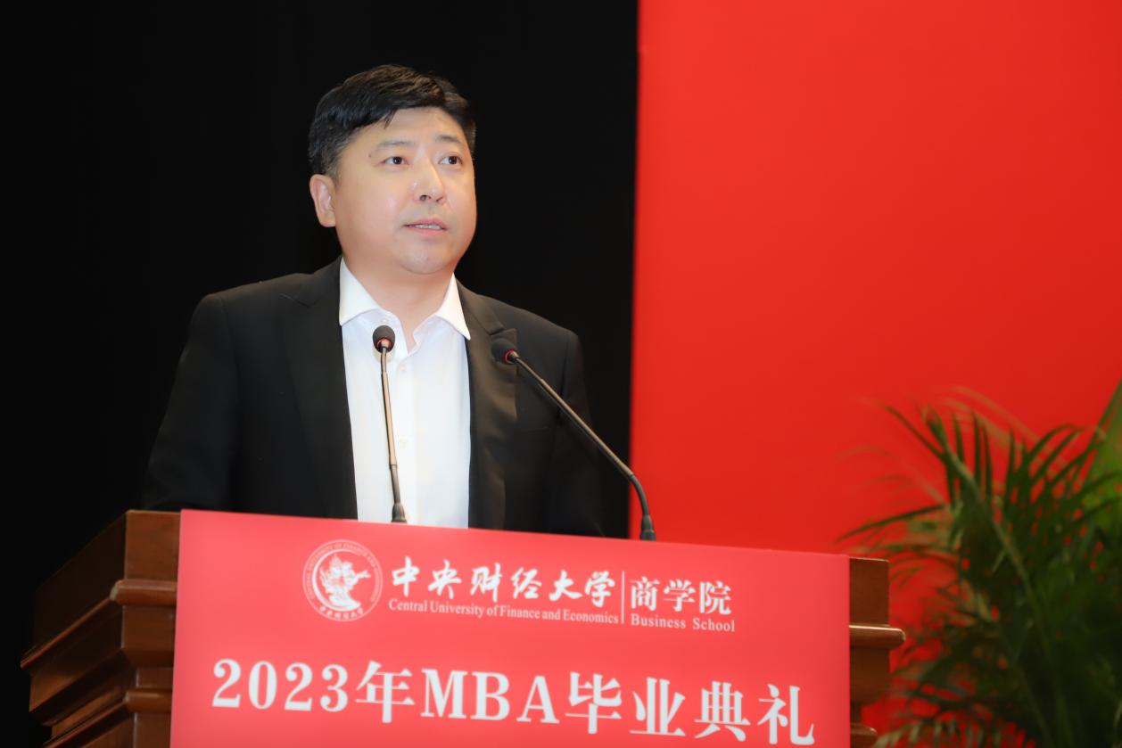 MBA任课教师于晓东作为教师代表发言,并向毕业生们献上真诚的祝福。他表示,非常高兴能代表公司全体MBA授课教师参加同学们的毕业典礼,见证大家毕业的喜悦,祝贺大家满满的收获,展望每个人美好的未来。他谈到,毕业为大家穿梭于工作岗位和公司课堂之间的辛劳和周折画上句号,也为大家开启了更高学位之下新阶段的开始和更高的目标与未来。于老师基于beat365亚洲体育的“商”字 的架构,将对大家的期望与祝福也浓缩在一个“商”字中。“商”的上半部分的“立”,于老师引用《左传》里的“太上有立德,其次有立功,其次有立‘’,期望大家在今后的工作中和生活中,从立德到立功再到立言,都不能放松对自己的要求。“商”字的下半部分“冏”,于老师赋予了炯炯有神和代表光明的内涵,以此祝愿广大毕业生前景光明,祝愿我们的国家拥有光明的未来。