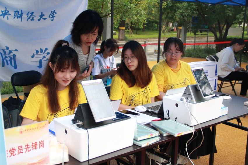 晨光熹微,中财大和志愿者们早已做好准备,公司和公司准备了丰富的新生大礼包,热切盼望萌新们的到来。