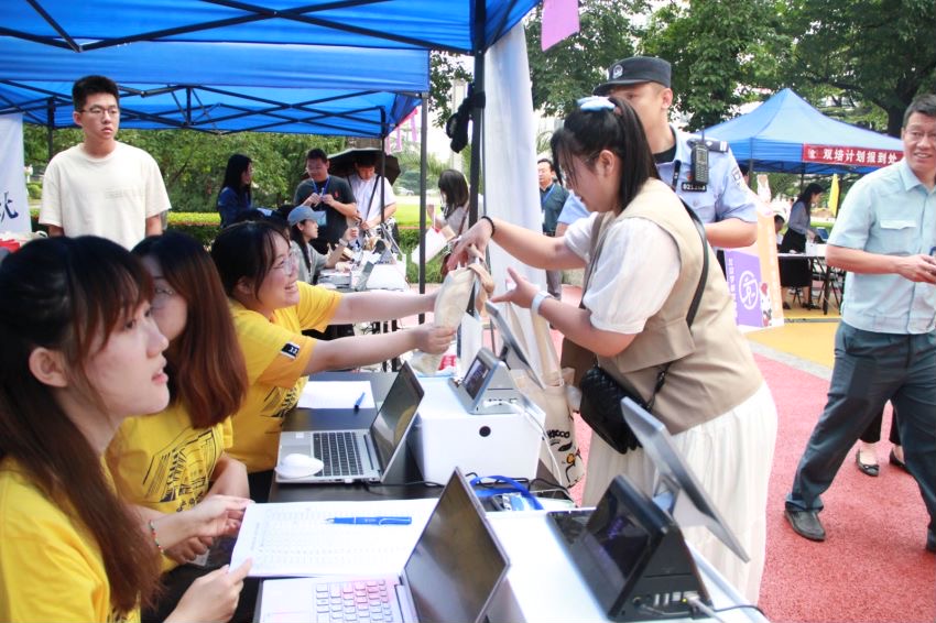 萌新们踏入校园,办理入学手续,梦想将在这里起航,新生与志愿者学长学姐热情交谈,和老师们亲切互动,合影留念。