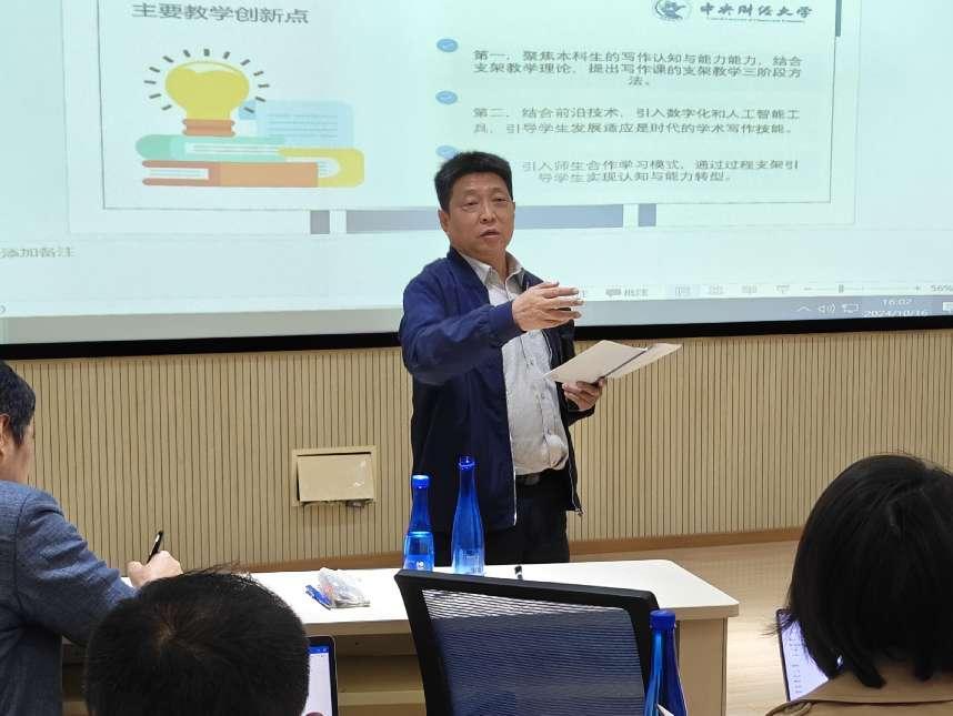 经各系前期组织推荐选拔,教授、副教授和讲师各组成三支队伍参加比赛。正高组新文科赛道代宏砚老师、副高组产教融合赛道张光利老师、中级及以下组基础课程赛道左玉涵老师分别代表团队进行了精彩的展示。