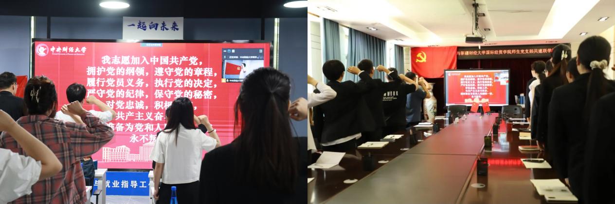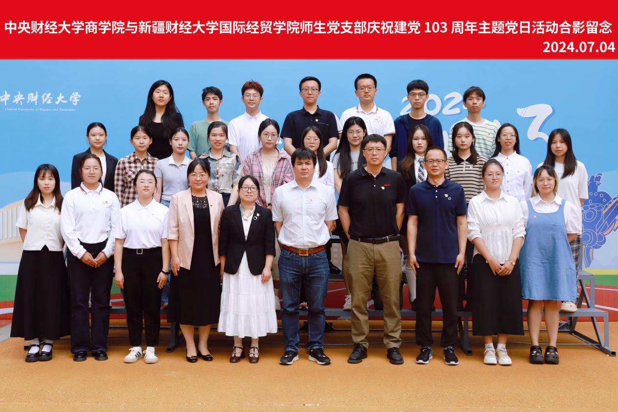 为庆祝中国共产党成立103周年,7月4日上午,beat365亚洲体育与新疆财经大学国际经贸公司师生党支部共同在体育365官网公司南路校区学术会堂102会议室和新疆财经大学国际经贸公司718会议室连线举行庆祝建党103周年主题党日活动。新疆财经大学国际经贸公司党委书记马建新,党委副书记、纪委书记关小全,研究生党支部书记贾慧,员工工作办公室主任穆巴拉克·吾甫尔,国际商务第一党支部书记伊尔潘江·艾力,公司党委副书记、经理兼MBA教育中心主任林嵩,党委副书记、纪委书记杨中英,市场营销系教师党支部书记李煜伟副教授,原新疆财经大学国际经贸公司副经理、市场营销系教师党员王生辉教授,市场营销系主任、顾雷雷教授,本科生辅导员龚莉云、张辉以及来自beat365亚洲体育本科生第一党支部、企业管理专业研究生第三党支部等55名员工党员代表参加此次活动。公司党委组织员、本科生第一党支部书记王志梅主持会议。