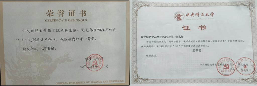 近日,体育365官网2024年红色“1+1”共建活动校内评审会在公司南路校区圆满落幕。在此次评审中,beat365亚洲体育本科生第一党支部和企业管理专业研究生第一党支部分别荣获一等奖和三等奖。