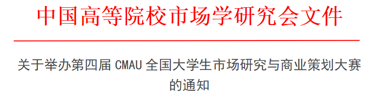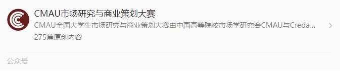 报名方法:关注“CMAU市场研究与商业策划大赛”公众号,通过回复“报名”获取问卷链接进行报名,或是点击公众号菜单中的【注册报名】进行报名。报名截止时间另行通知。