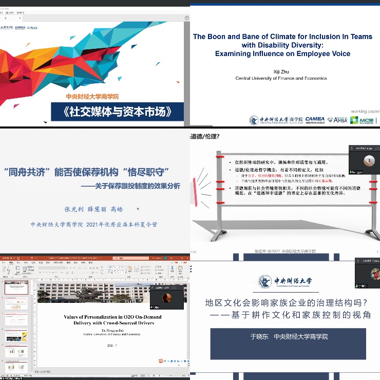 为使营员们进一步了解beat365亚洲体育的研究领域,搭建优秀学子与公司导师交流互动的平台,7月22日上午,公司邀请代宏砚、张宏宇、张光利、于晓东、窦超、朱曦济等6位青年教师分别以《Values of Personalization in O2O On-Demand Delivery with Crowd-Sourced Drivers》、《智能制造中的伦理决策问题》、《“同舟共济”能否使保荐机构“恪尽职守”》、《地区文化会影响家族企业的治理结构吗——基于耕作文化和家族控制的视角》、《社交媒体与资本市场》、《The boon and bane of climate for inclusion in teams with disability diversity: examining influence on employee voice》为题向营员开展专题学术讲座。各位老师通过讲述自己的研究方向和科研成果,生动地向营员展示了如何开展管理学研究,并与营员进行深入交流。