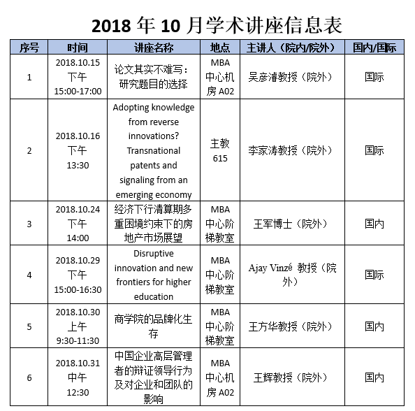 2018年10月,公司教师积极邀请海内外知名学者来校举办讲座,加强内外部学术交流。
