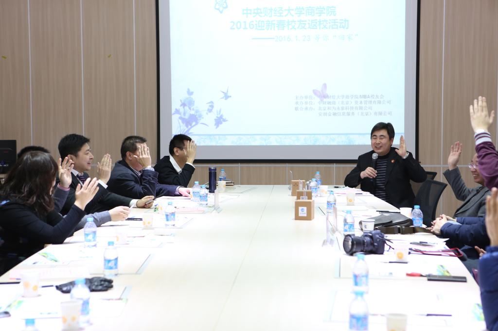 贾晓菁副主任指出,每年冬季,员工们都会赶到公司来赴约,MBA中心的老师也期待这一刻,希望这个美丽的约定一直传承下去;她高度赞扬了第三届MBA员工会所开展的工作和取得的成绩,表示MBA中心非常重视MBA员工工作,致力于为员工打造终身学习和资源共享的平台;她最后欢迎员工们常回母校,并提前祝大家新春快乐,工作顺利。