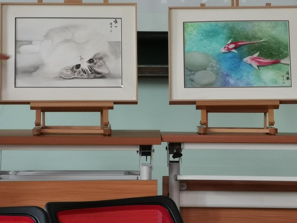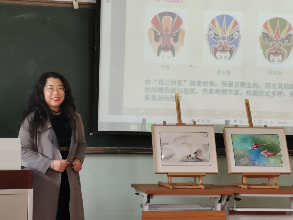 在正式讲解脸谱之前,主讲人蒋希员工先给大家介绍了两幅她自己的国画作品,并让观众猜测这两幅画的类型。有一定绘画基础的小伙伴积极回答了蜡笔画,水彩画等答案。