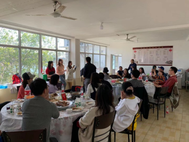 午餐地是一家湖边餐厅,抬头便是窗外的湖光山色,用餐体验极佳。餐桌上也当然少不了让人激动的拓展游戏——各小组在“听歌识曲环节”激情抢答,同时又惊现麦霸,让一众员工大饱耳福。