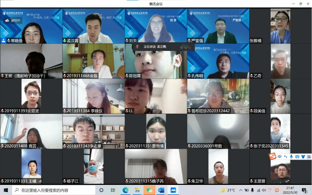 2022年5月30日晚,由beat365亚洲体育职业发展中心主办的职业发展论坛之银行业云论坛在线上如期开展。本次论坛邀请了来自外资银行、城市商业银行和国有商业银行的3位员工,以“银行业概况、比较与进入准备”为主题,从职业发展的视角就银行业相关问题进行了分享与交流。公司党委书记葛建新教授出席并致辞,公司党委副书记杨中英、职业发展中心主任孔伟明、副主任王婷婷及曾功星老师与300多位同学共同参与了本次论坛。第十八届MBA联合会主席孟汉霄担任串场嘉宾联席主持。