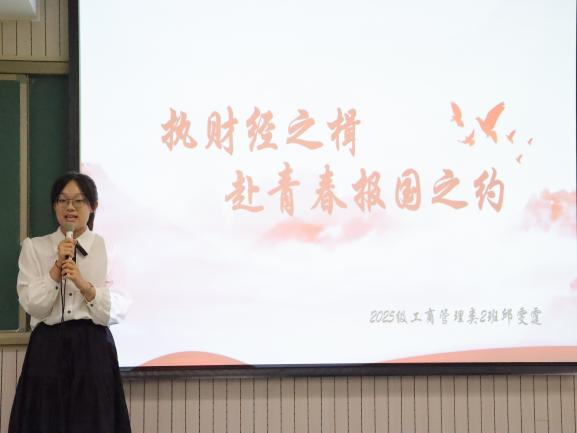 他们用真挚的语言讲述自己对国家、对公司、对青春的理解与期待。演讲中既有对“财经报国”的深刻思考,也有对“我与中财大”的温情诉说,更不乏对“青春奋斗”的豪情宣言。他们的青春之声汇成一幅幅动人的画卷,勾勒出新一代商院学子理想的模样。
