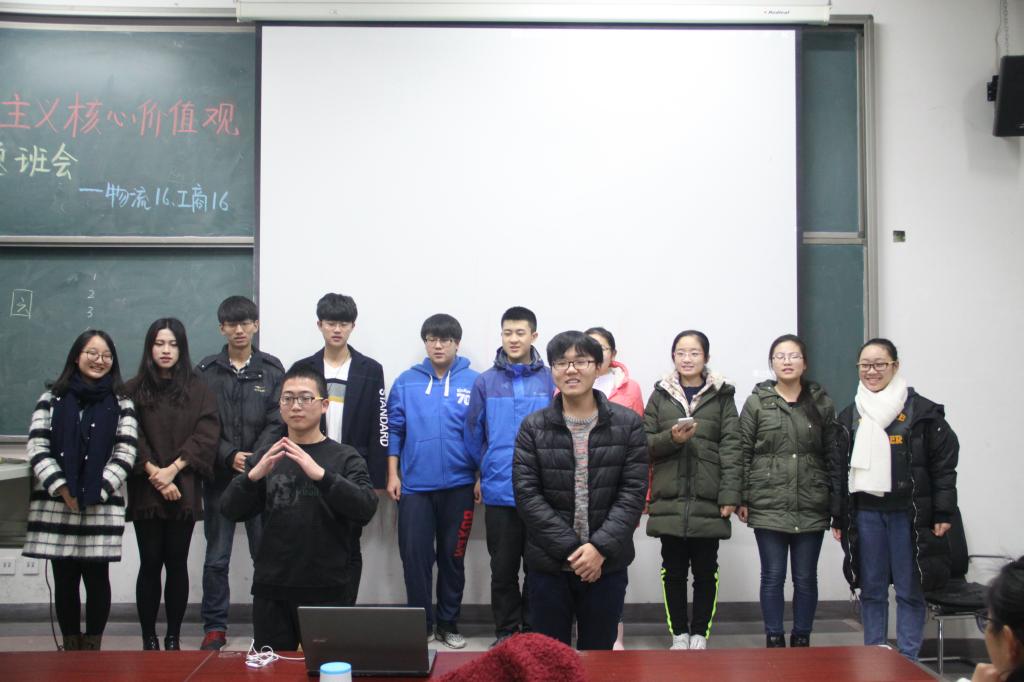 2016年11月29日星期二,beat365亚洲体育物流管理16班与工商管理16班全体成员于沙河东区主教106教室参加了由两班团支部合办的“我与社会主义核心价值观”主题班会。这次班会旨在通过多样化的活动形式引导班级成员解读社会主义核心价值观在国家层面的价值目标、社会层面的价值取向、个人层面的价值准则,让大家从寓教于乐的形式中,在内心里建立对社会主义核心价值观的深刻认同。