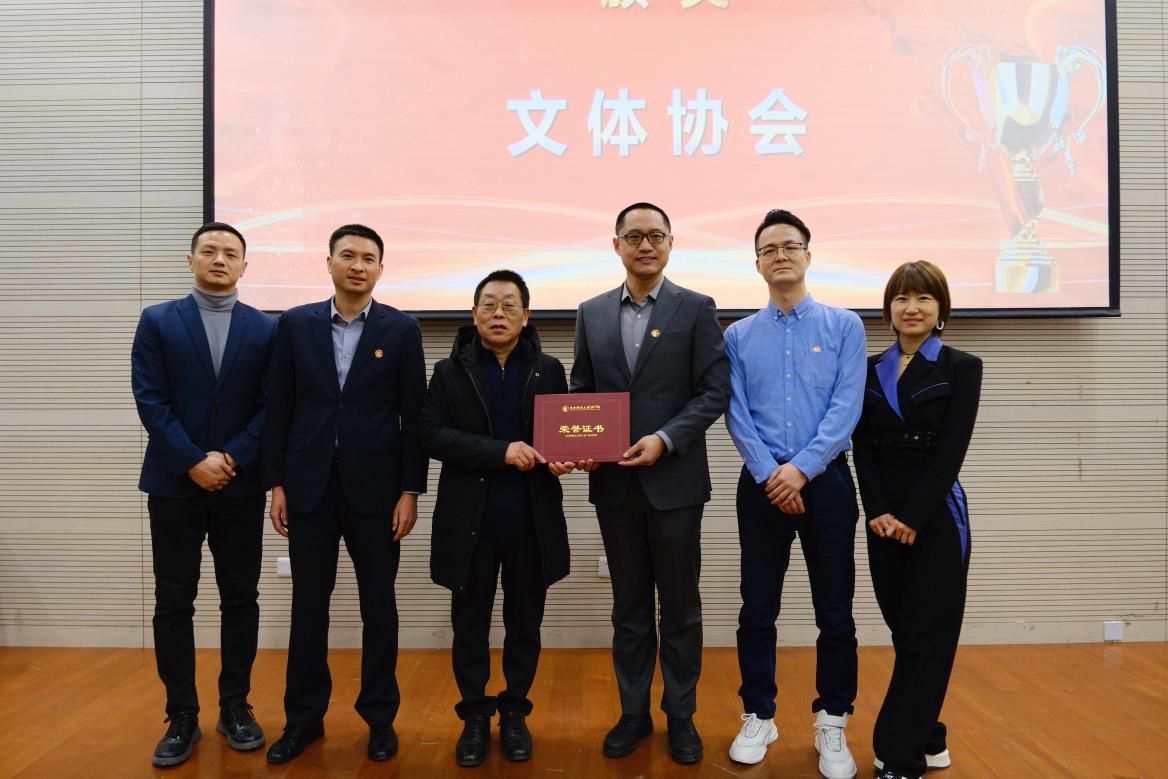 MBA员工工作部曾功星老师、文体协会会长邱滢霏、执行会长张树涛为新任委员20级王成成、21级袁帅、21级胡新华、22级吴红蕾、22级刘畅、22级李金龙颁发聘书。