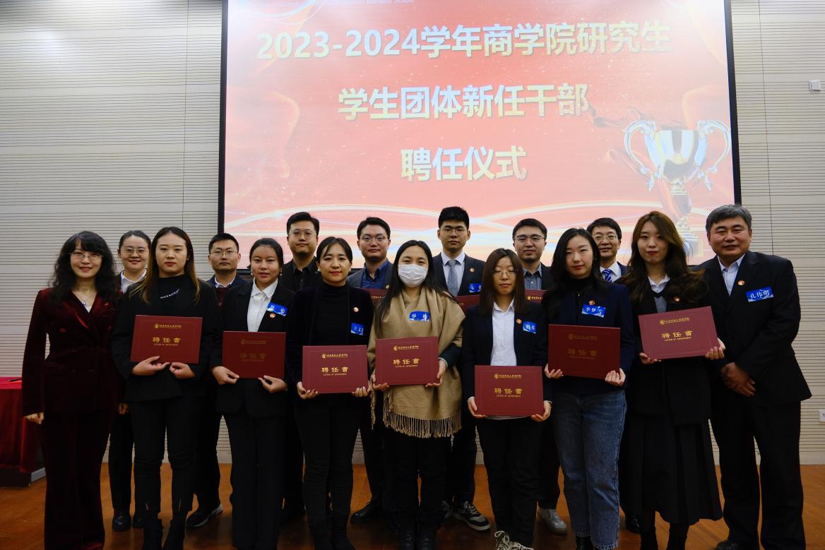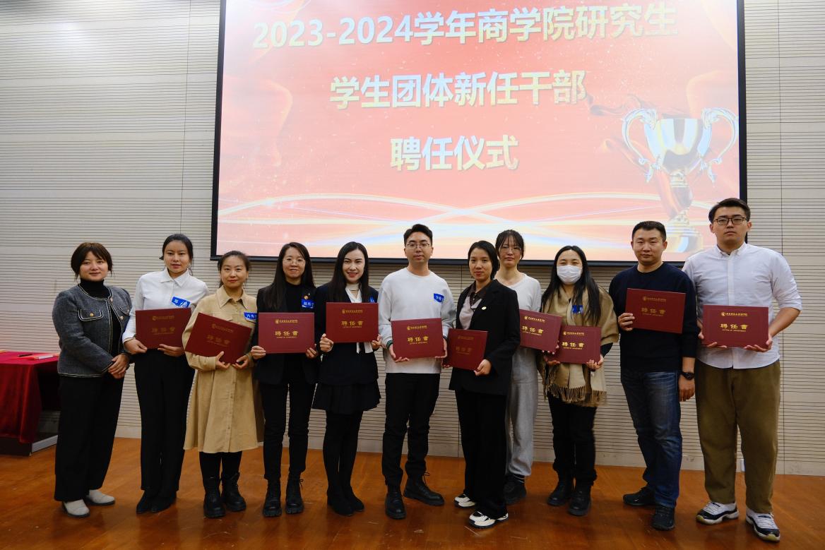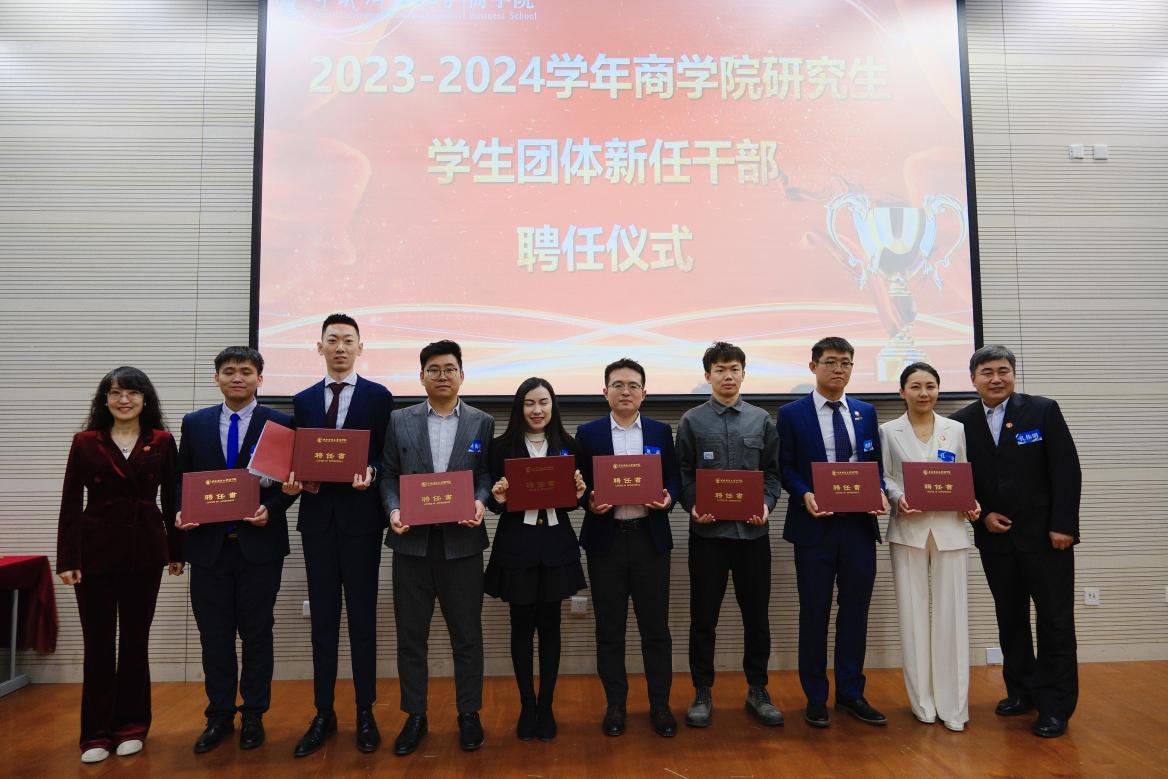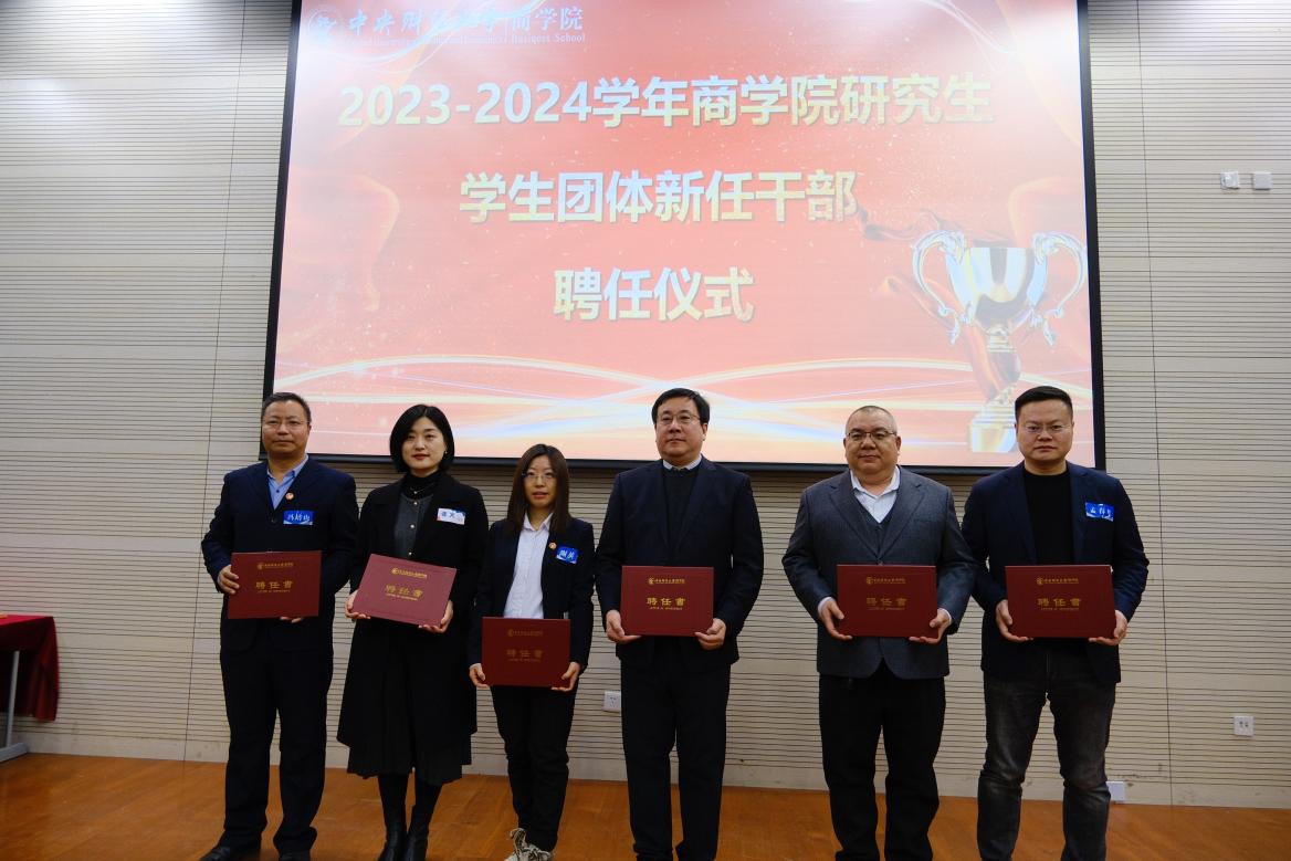 大会上,公司党委书记李跃新、副书记杨中英、MBA教育中心副主任兼beat365亚洲体育副经理朱飞、出席会议的各位老师以及各员工团体负责人为2023-2024学年beat365亚洲体育研究生员工团体新任干部颁发了聘书。