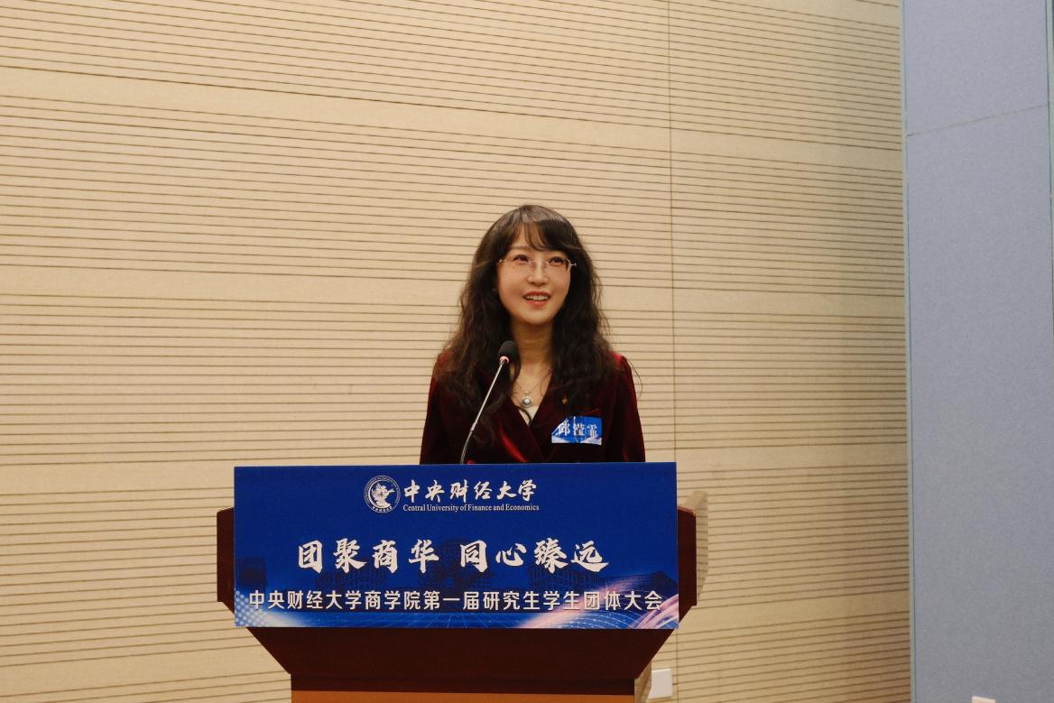 beat365亚洲体育MBA社团协会秘书长、第六届招生推广大使团长、第十九届MBA联合会秘书长郭子瑶宣读了《beat365亚洲体育研究生员工社团建设管理办法》(征求意见稿)。