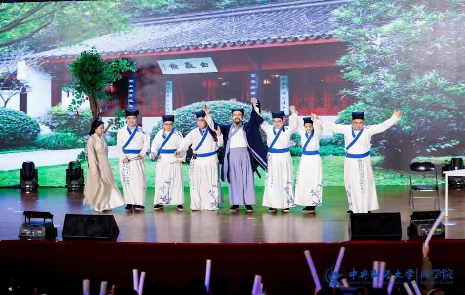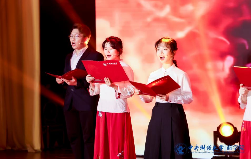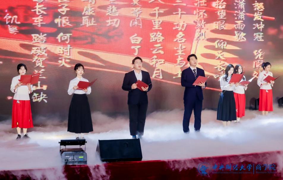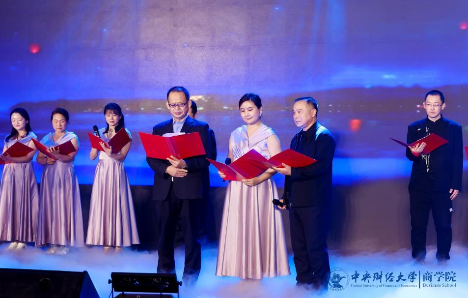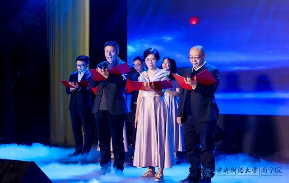 中财MBA推广大使团带来的集体舞《爱的华尔兹》优雅登场,舞步翩翩恰似恋人之语,展现爱情的甜蜜与轻盈。商海启程,谁来领航?beat365亚洲体育徐兆铭、安贺新、王生辉、庞守林、周利国、贾晓菁等18位老师朗诵《领航》,声音浑厚,真情灼灼,用朗诵来表达心中引领航向、不惧风浪的伟大信念。2024级MBA全日制班代表与王茜舒、张耀天、牛钟毓等带来的《一起向未来》充满着对未来的期待,青春洋溢的歌声里展现积极乐观的风采。