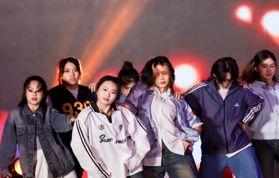 红光闪烁,燃爆全场。来自未央舞社帅气的开场舞《Bad Villain》以力量感与无限活力赢得全场热烈欢呼。