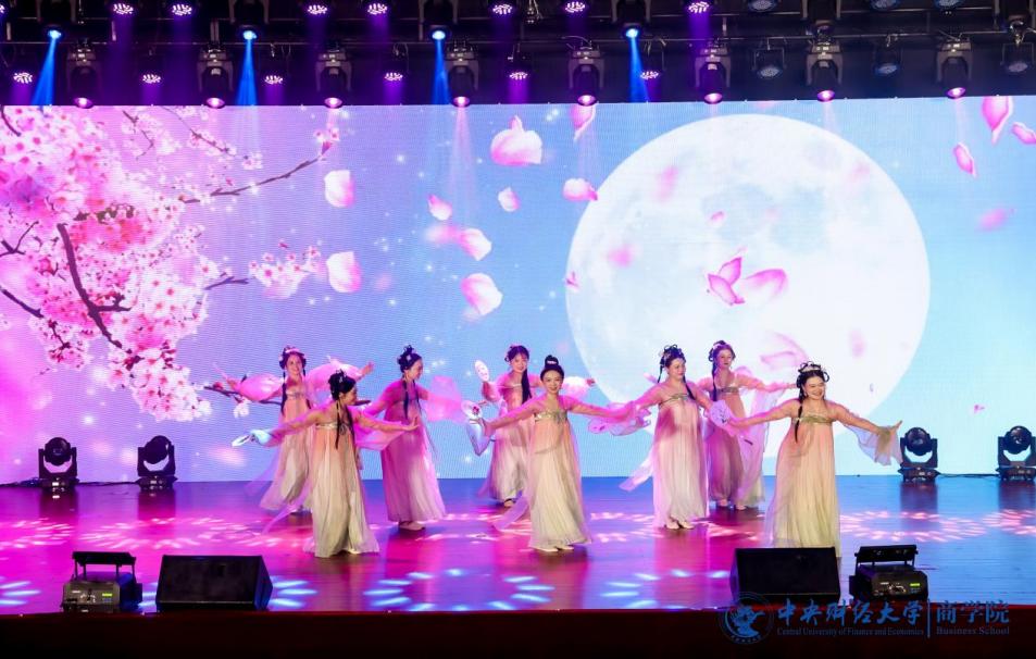张赫演唱的《输了你赢了世界又如何》饱含深情,低音深沉,高音清亮,触动着观众的心。充满青春活力的2024级MBA产教融合班(P10班、P11班)带来了舞蹈《舞动奇迹》,热情洋溢,富有感染力,欢快的节奏引发全场跟着摇动。