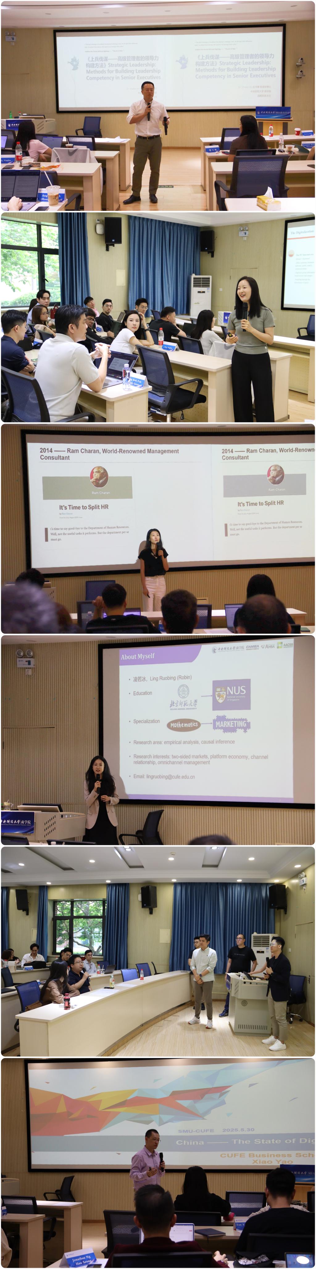 凌若冰助理教授以实体店发货(SFS)策略为切入点,用零售商数据论证全渠道整合对消费行为的影响,强调营销需紧跟技术迭代。姚潇老师聚焦《数字经济时代中国金融市场的转型》,通过回顾近年来中国互联网经济的高速发展路径,以淘宝、京东、拼多多等互联网巨头飞速发展的实际案例,揭示当前数字经济的深层影响力。此外。牟善栋副教授和凌若冰助理教授参加了结课仪式,对三个小组展示进行点评指导,并与员工们展开了深入的互动交流。