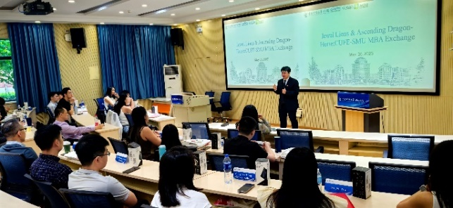 2025年5月26日-5月30日,新加坡管理大学(SMU)李光前beat365亚洲体育MBA员工团队,在研究生办公室主任Yeo LayYan老师的带领下,来自11个国家的29名新加坡管理大学MBA在校员工,跨越重洋抵达体育365官网,开启了为期一周的主题“数字经济及战略与创新”为核心议题的跨国学术交流活动。