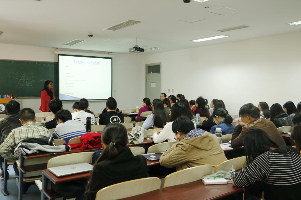10月27日,Bhumika Gupta博士为2017级学硕研究生举办讲座,主题:HRM Policies: A French Perspective。Bhumika Gupta博士以从管理的定义、功能引入话题,着重从管理的领导功能方面提出人力资源管理的定义、功能。其中列举印度“国父”甘地的例子,提出领导力是一种能够让其他人追随的能力,真正的领导者能够了解你所处的情况,能够鼓励你去做应该做的事情。随后,Bhumika Gupta博士讲述了人力资源管理的发展历史,在19世纪初期到19世纪60年代是基于组织愿景的个人管理,还未形成人力资源管理;19世纪70年代到80年代,演变成基于策略愿景的组织中专门进行人力资源管理;到了90年代后,演变成基于战略愿景的有战略的人力资源管理,每个组织、公司都需要有自己的人力部门,根据自身情境下进行员工的招募。另外,Bhumika Gupta博士介绍了法国的税收政策,单身的人需要上缴最高比例的税,家庭中孩子越多需要缴纳的税越少,并与同学们交流了中国的税收政策。接着,Bhumika Gupta博士与大家就法国、中国以及班里两位分别来自越南和摩洛哥的职工,讨论了四个国家雇员每年的休假时长,其中法国最长是两个月左右,其次是摩洛哥一个月左右。随后,Bhumika Gupta博士讲到了退休年龄和福利,与中国不同的是,法国是一共需要工作42年退休后才有一系列的福利,如果未满年限,退休所获得的福利会有所折扣。讲座内容丰富,员工们受益匪浅。