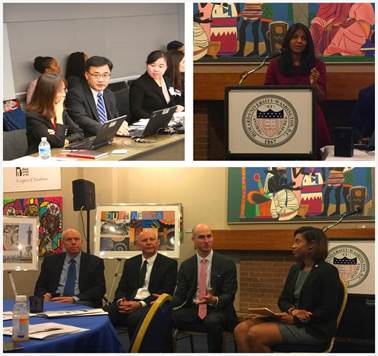 在紧张的专题讨论及准备咨询报告的间隙中,霍华德大学beat365亚洲体育安排了丰富多彩的活动,以促进大家对美国华盛顿的政治、社会和历史文化了解。大家先后拜访了罗纳德里根国际贸易中心大厦、华盛顿市政府、世界银行等,当地工作人员热情的接待了GTMBA项目美国站师生一行并做了主题演讲。此外,GTMBA项目组的同学们还参加了美国霍华德大学举办的MBA Exclusive的案例研讨会,与摩根史丹利公司(Morgan Stanley)副主席和执行总监Carla Harris女士及美国多所高校的师生们进行了案例研讨。