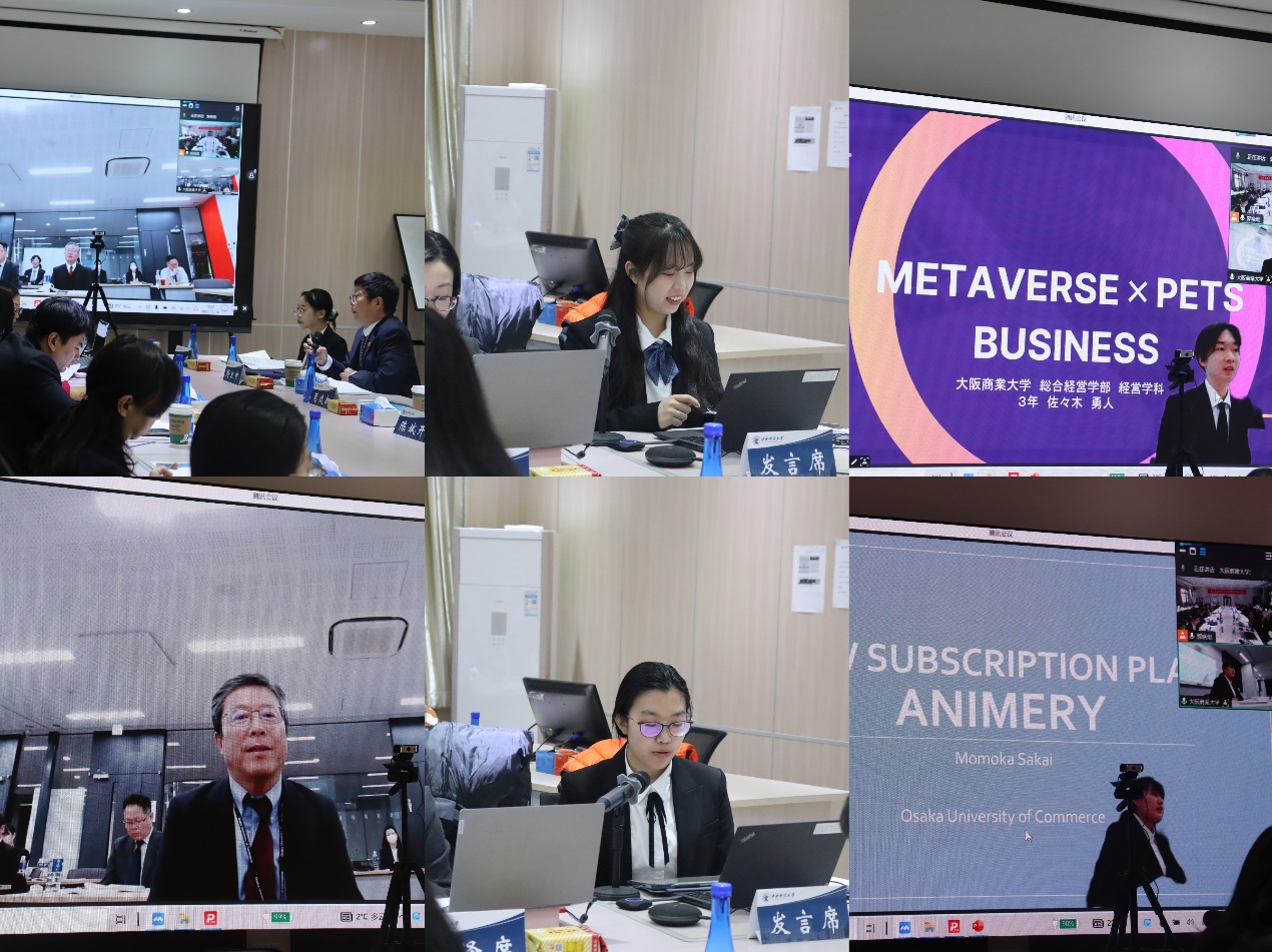 经双方教授评选,体育365官网的张思扬同学和大阪商业大学的成田卓巳同学荣获本次研讨会“最佳汇报奖”。颁奖仪式上,葛建新教授对员工们提出“方案做得好,还要写得好、说得好”的期许,并代表中方,为大阪商业大学获奖同学进行云端颁奖。孫飛舟教授代表日方,为体育365官网获奖同学进行云端颁奖,并对其创业项目的社会意义和实践意义表示赞扬。