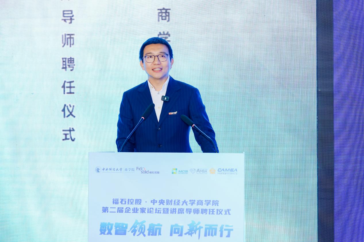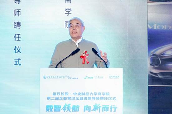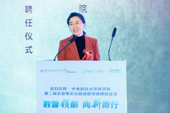 December 8, 2024, the Fushi Holdings · CUFE Business Company Second Entrepreneur Forum and Chair Professor Appointment Ceremony was successfully held in Room 202 of the Academic Hall at Central University of Finance and Economics (CUFE). The event was hosted by CUFE Business Company, co-organized by the CUFE Business Company CEO Club, and strongly supported by Beijing Fushi Holdings Development Co., Ltd. CUFE Vice President Li Jianjun attended the forum and delivered a speech. The forum was also graced by the presence of Prof.Li Yuexin, Party Secretary of CUFE Business Company; Lin Song, Dean of CUFE Business Company and Director of the MBA Education Center; and Miao Runsheng, former General Manager of China Chengtong Group Finance Co., Ltd. Themed “Navigating the Digital and Intelligent Era: Embracing the Future,” the forum featured ten distinguished scholars and senior executives from leading enterprises as guest speakers. Over 200 business executives, alumni, faculty, and students participated in the event. The forum also marked the grand appointment ceremony of the inaugural cohort of Chair Professors for CUFE MBA. The event was hosted by Zhu Fei, Deputy Director of the MBA Education Center and Associate Dean of CUFE Business Company, with the roundtable forum moderated by Prof.Liu Shubo, Head of the Department of Strategy at CUFE Business Company. The forum was streamed live across multiple online platforms, attracting over 11,000 virtual participants. The on-site discussions and exchanges were dynamic, generating significant social engagement and positive feedback.