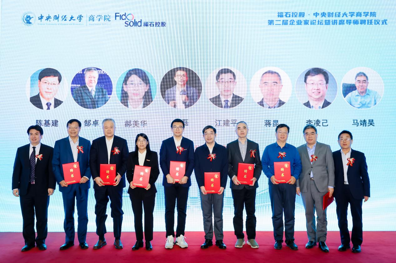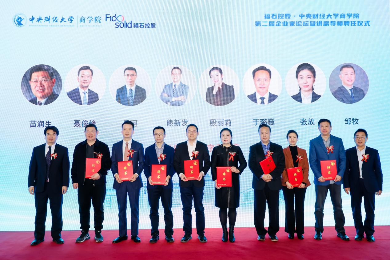 In order to actively respond to the new needs of the times and more effectively build a new talent cultivation model of π-type, aiming at cultivating management talents with both profound financial background and cutting-edge economic and management practice ability, the CUFE Business Company officially appointed the first batch of 24 MBA chair tutors, and this forum held a grand appointment ceremony for the first batch of MBA chair tutors. Dr. Li Yuexin of the CUFE Business Company and Lin Song, presented the appointment certificates to the tutors.