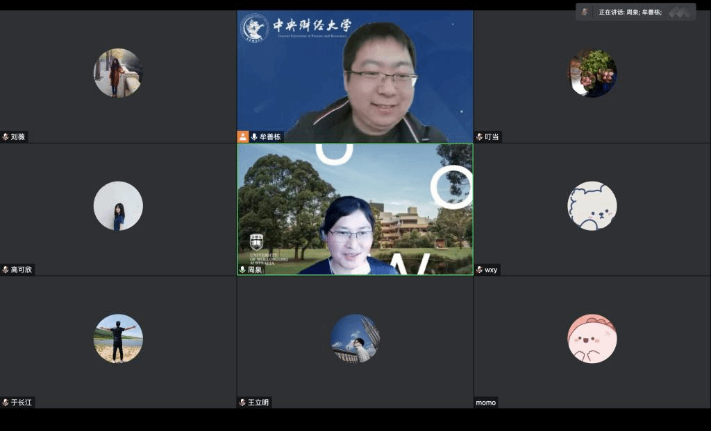 At 2:00 p.m., November 18, 2022, the Business Company of Central University of Finance and Economics (CUFE) held the 18th Session of the Excellent Academic Forum Lecture Series in 2022 online through Tencent Meeting. Dr. Zhou Quan from the Company of Business of the University of Wollongong was invited as the keynote speaker of this lecture, and more than 20 people (including teachers, master and doctoral students, and undergraduate students) attended this lecture.