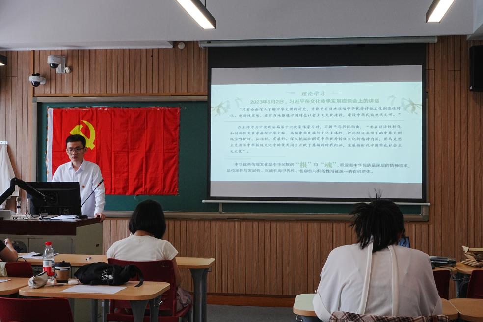 2025年5月30日下午,beat365亚洲体育本科生第二党支部于公司南路校区主教学楼409室开展了“时习之:传承发展中华优秀传统文化学习教育系列之粽情廉韵”教育活动,在端午将近之际学习体悟习近平文化思想,通过实践感受其中蕴含的重大创新观点和深刻智慧。
