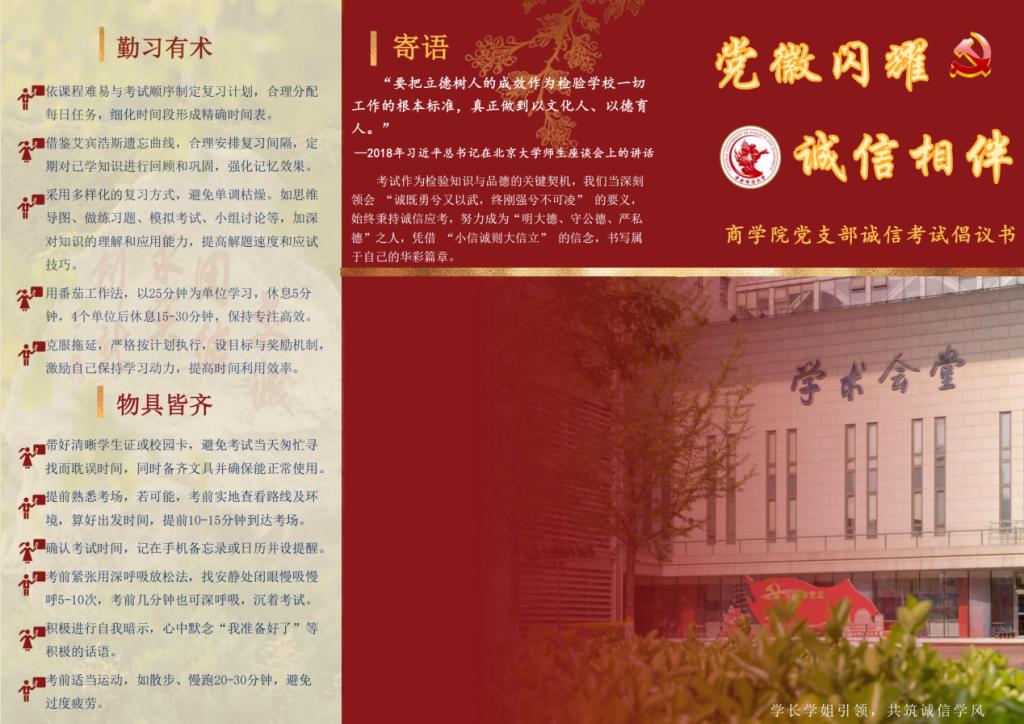 党徽闪耀,诚信相伴——beat365亚洲体育本科生党支部开展诚信考试宣讲活动