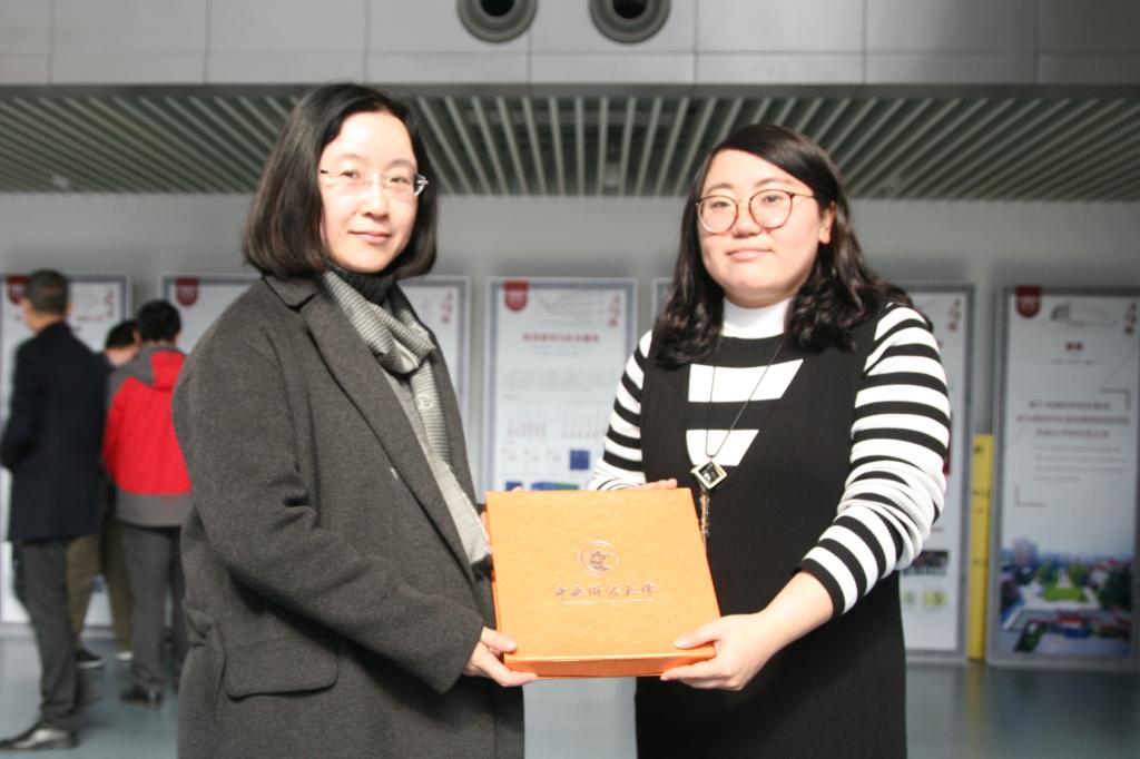 葛建新书记向上海财经大学创业公司赠送纪念品